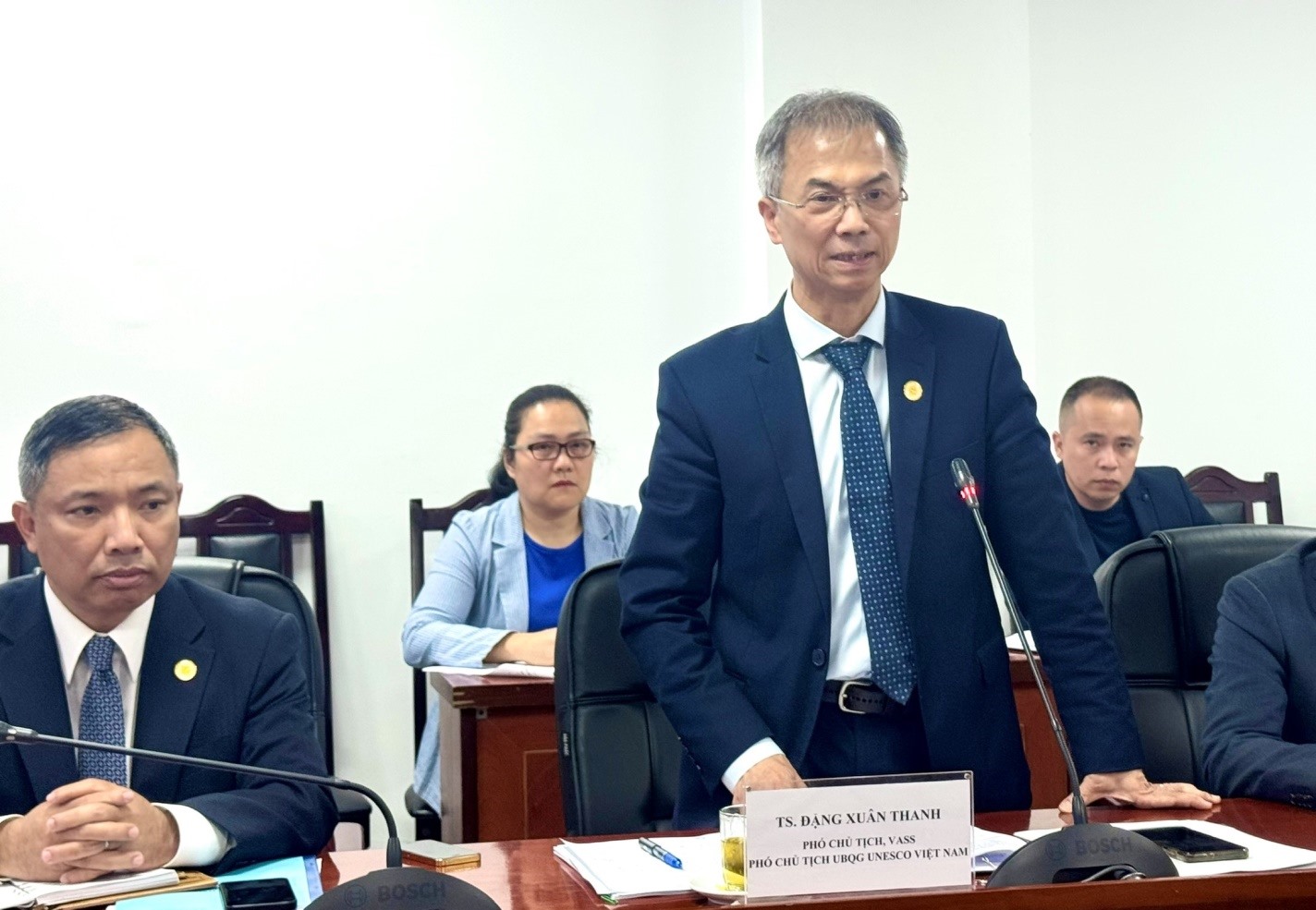 TS. Lê Văn Hùng, Phó Viện trưởng Viện Địa lý nhân văn và Phát triển bền vững phát biểu tại buổi làm việc